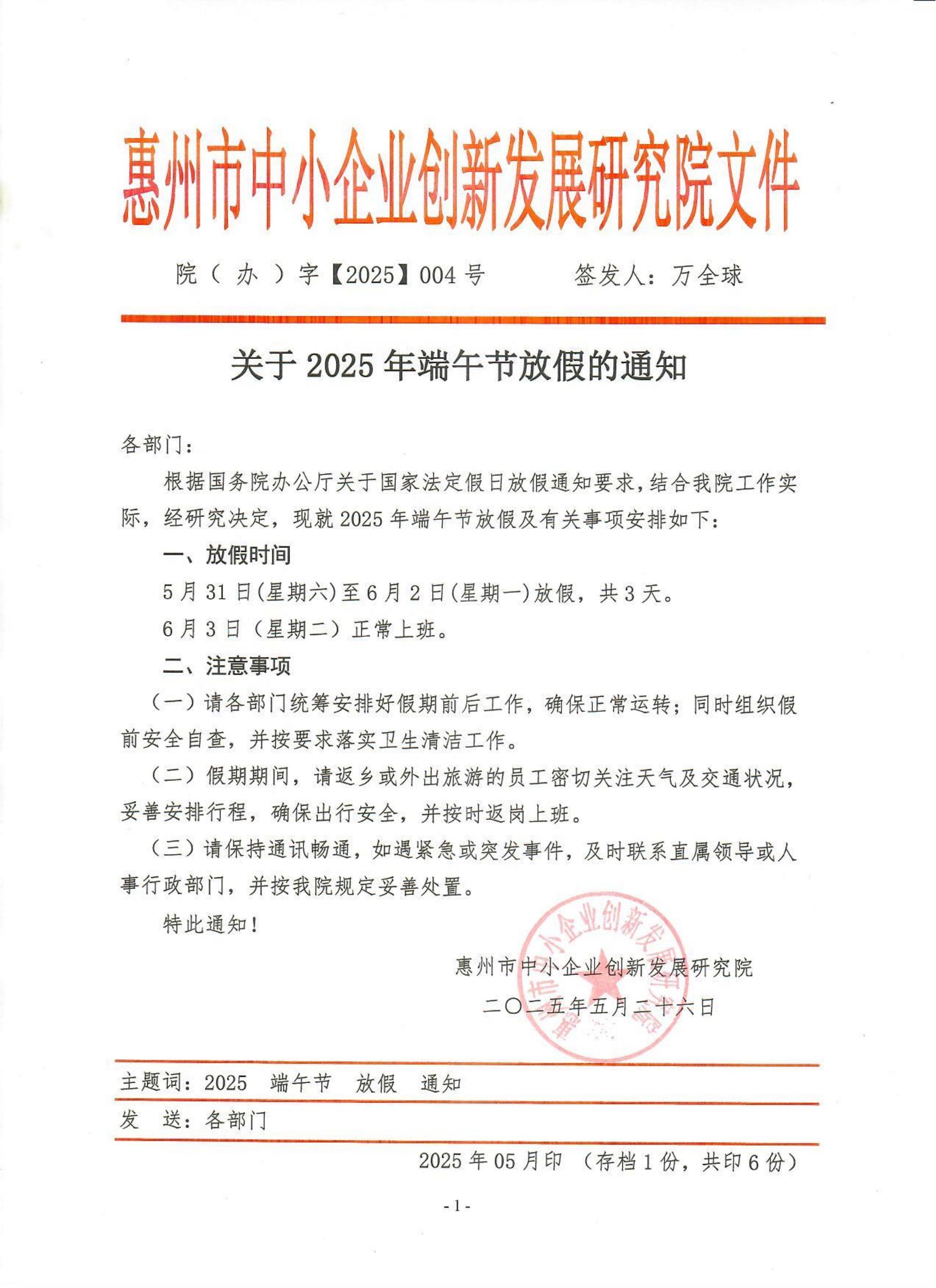 关于2025年端午节放假的通知