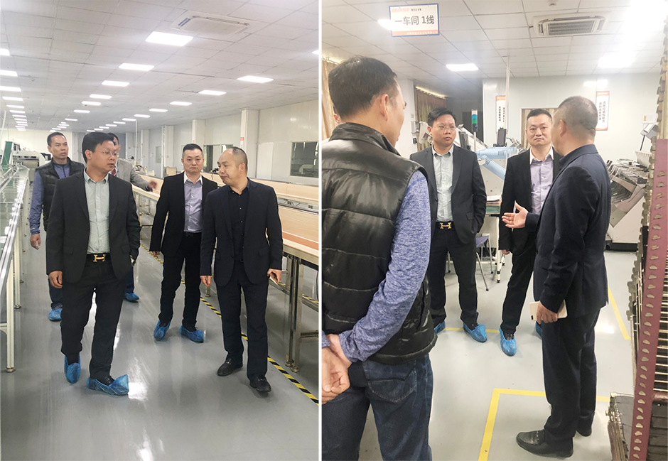 随后在吴董事长及其合作方深圳市鸿通宇电子有限公司龙家勇董事长、深圳精晟企业咨询有限公司总经理尹阳衡的陪同下,参观了斯巴达集团及其下属公司——新生派科技公司、新纬度智能照明科技公司等。在参观其几家公司车间期间,惠创院董事长黄治淮结合自身20余年制造业的企业管理、咨询辅导经验,不时提出了建设性、更优化的建议和意见,受到了吴董事长等人的高度评价。