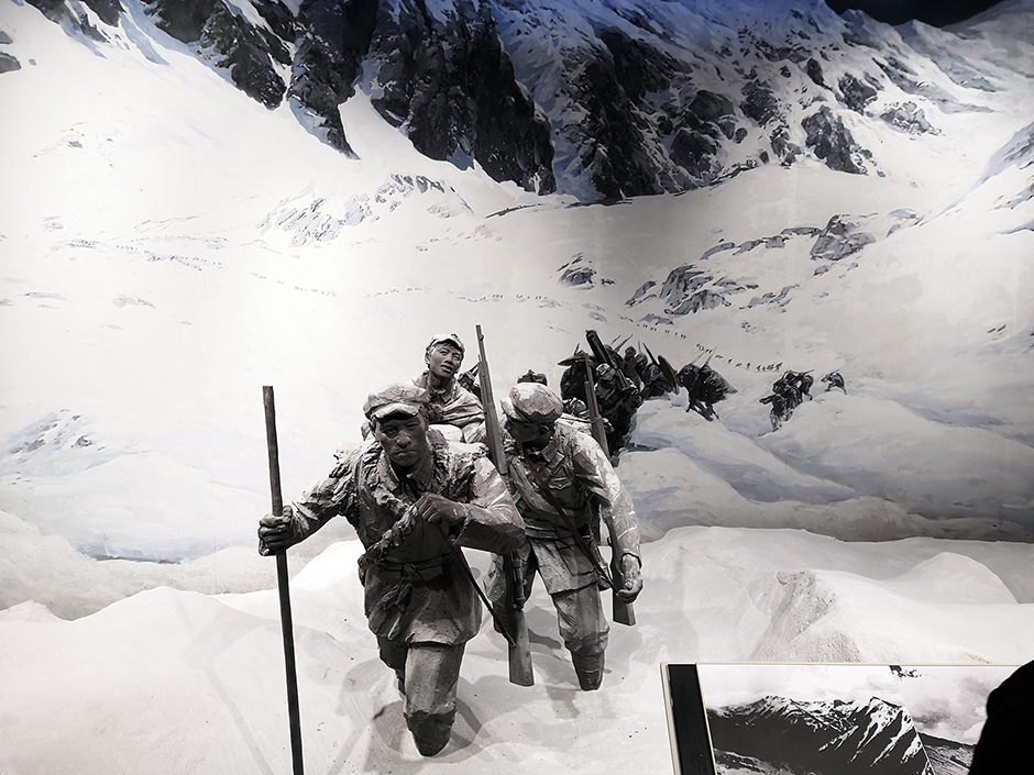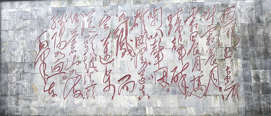 在毛主席书写的气势磅礴《七律·长征》前,我们合影留念后,于10:30乘车继续红色之旅的下一站--娄山关。