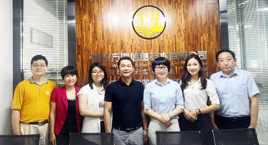 6月13日上午,惠州市四季绿农产品有限公司副总经理曾兰兰,广东伟伦律师事务所高级合伙人李广萍,惠州市深科信企业管理咨询有限公司经理邱琪,惠州市中小企业协会秘书长丁婷、副秘书长封云,惠州市中小企业创新发展研究院文化传播事业部总经理王彦德一行走访惠州万鸿信息技术有限公司,受到了该公司董事长徐焕万的热情接待。