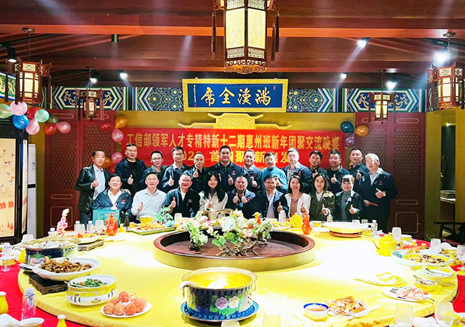 1月6日晚,2021-2022年度工业和信息细化部中小企业经营管理领军人才专精特新十二期(惠州)班在惠州市惠城区极猷上苑文化馆举办了“2023首相聚、新出发”新年团聚交流晚宴活动。