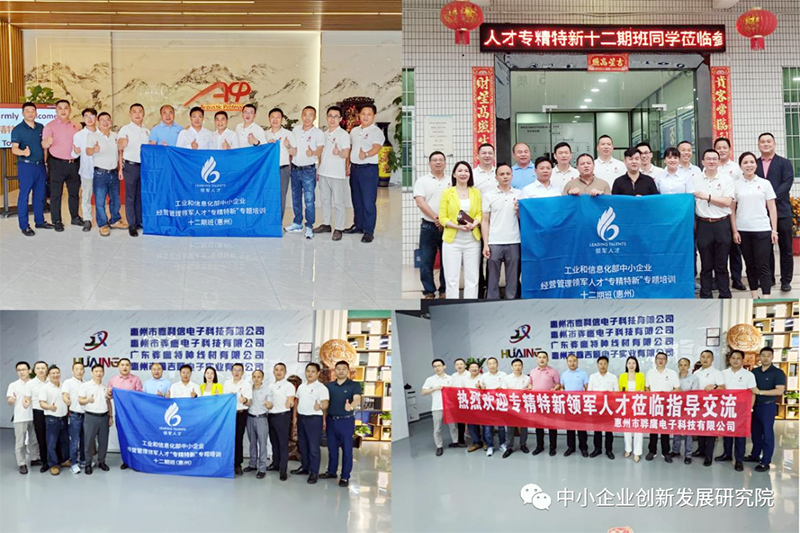 5月12日下午,工业和信息化部中小企业经营管理领军人才专精特新十二期(惠州)班学员在我院万全球院长的带领下先后到惠州市音博仕科技有限公司、惠州市骅鹰电子科技有限公司、惠州市合力新材电子科技有限公司参访交流。