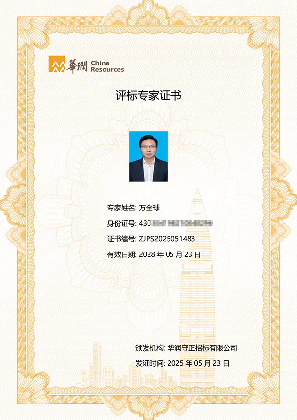 近日,经过资格审查、业绩证明、入库考试等环节的严格选拔审核,我院万全球院长成功入选华润守正招标有限公司评标专家库,成为华润集集团的评标专家!这不仅是对院长个人能力的高度肯定,也是我院综合实力的有力体现。