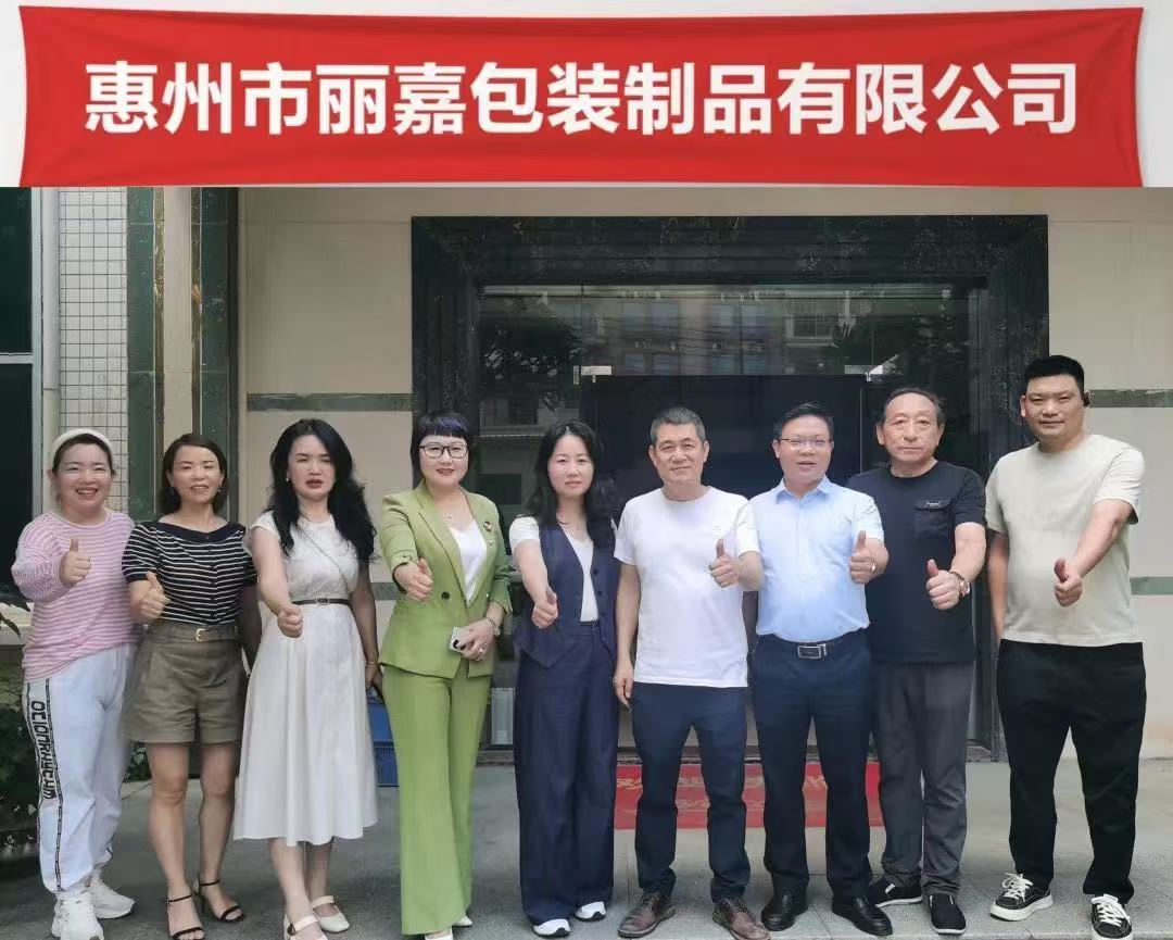 2025年7月8日,惠州鑫浩佳硅胶制品有限公司总经理黄玉红、惠州市中小企业协会秘书长丁婷、副秘书长封云以及我院万全球院长一行人员走访惠州市丽嘉包装制品有限公司,受到该公司总经理黄振光等人的热情接待。